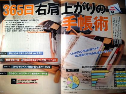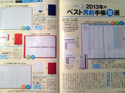「DIME」さんは男性誌ですので、2013年のベスト男前手帳10選 と銘打って、厳選されたカッコいい手帳を紹介しています。