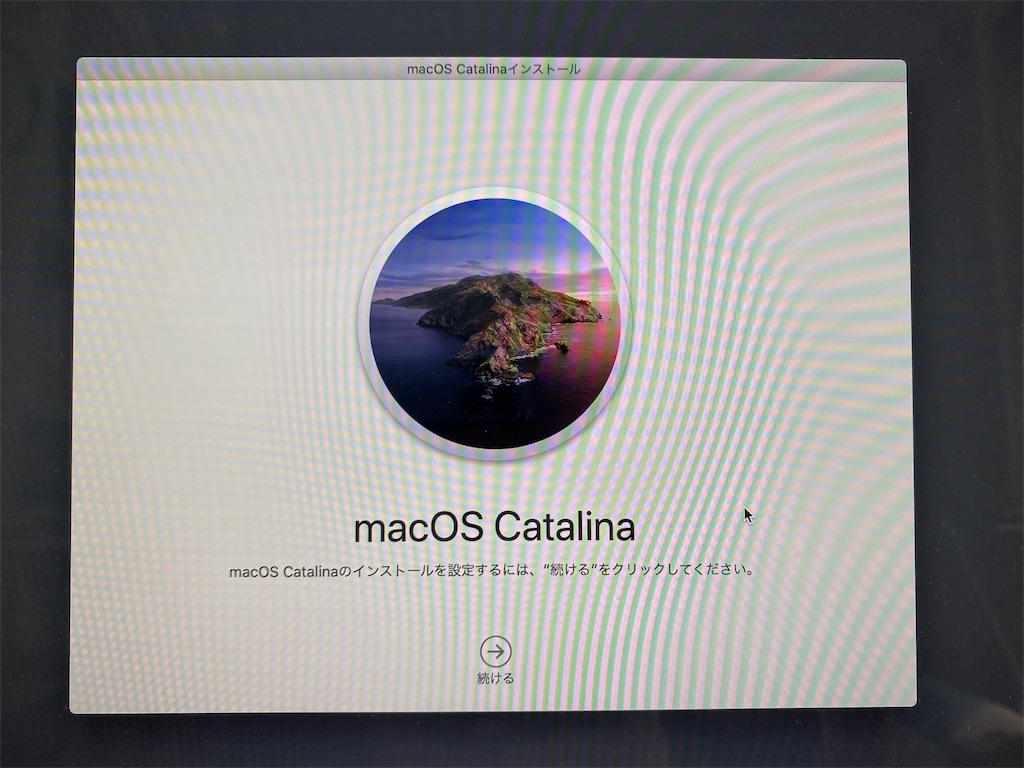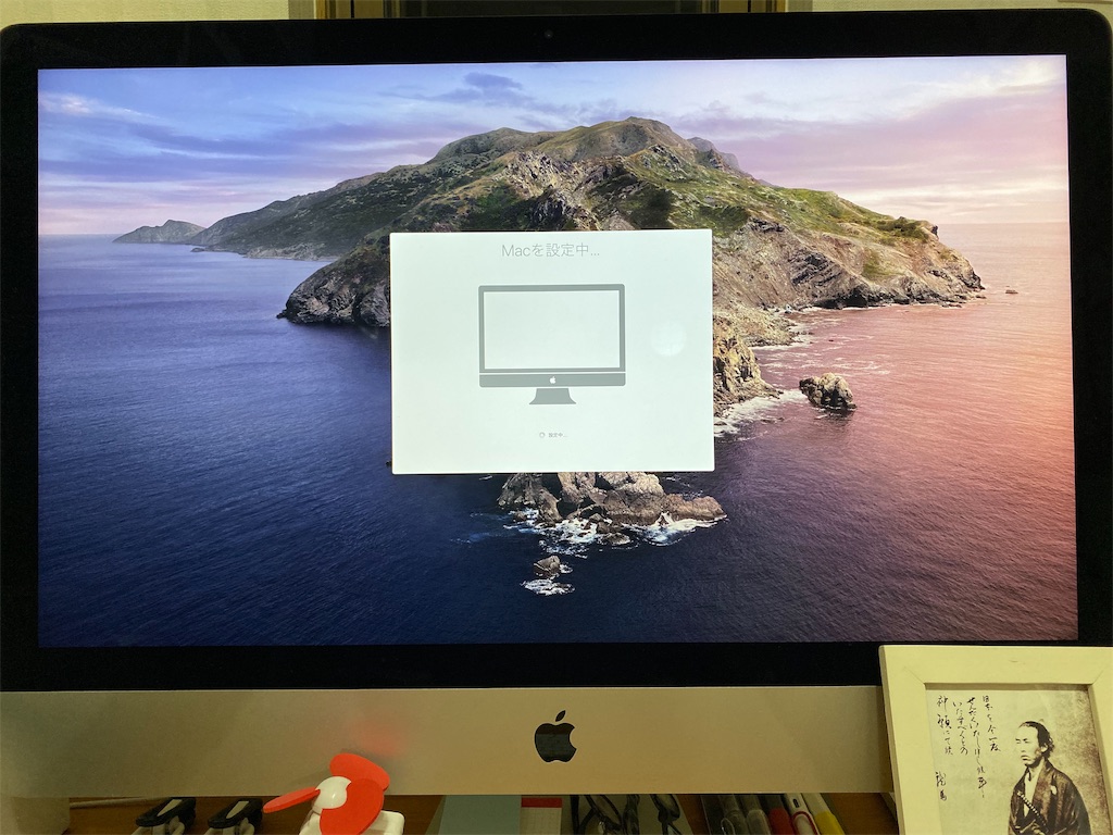 最初に僕のiMacの症状を説明しておくと、インストールが終わって、Macの画面がCatalinaの画面にかわってから完全に止まってしまいました。